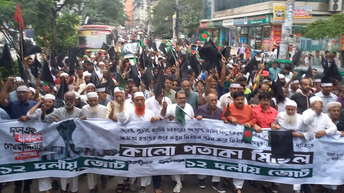 শুক্রবার (২৫ আগস্ট) বিকেলে রাজধানীতে কালো পতাকা গণমিছিলের আগে সংক্ষিপ্ত সমাবেশে বক্তারা এসব কথা বলেন। পরে সরকারের পদত্যাগ, সংসদ ভেঙে নিরপেক্ষ সরকারের অধীনে নির্বাচনের দাবিতে ১২ দলীয় জোটের নেতৃত্বে বিজয়নগর পানির ট্যাংকি সংলগ্ন সড়ক থেকে কালো পতাকা মিছিল বের হয়ে নয়াপল্টনে আনন্দ ভবনের সামনে গিয়ে শেষ হয়।