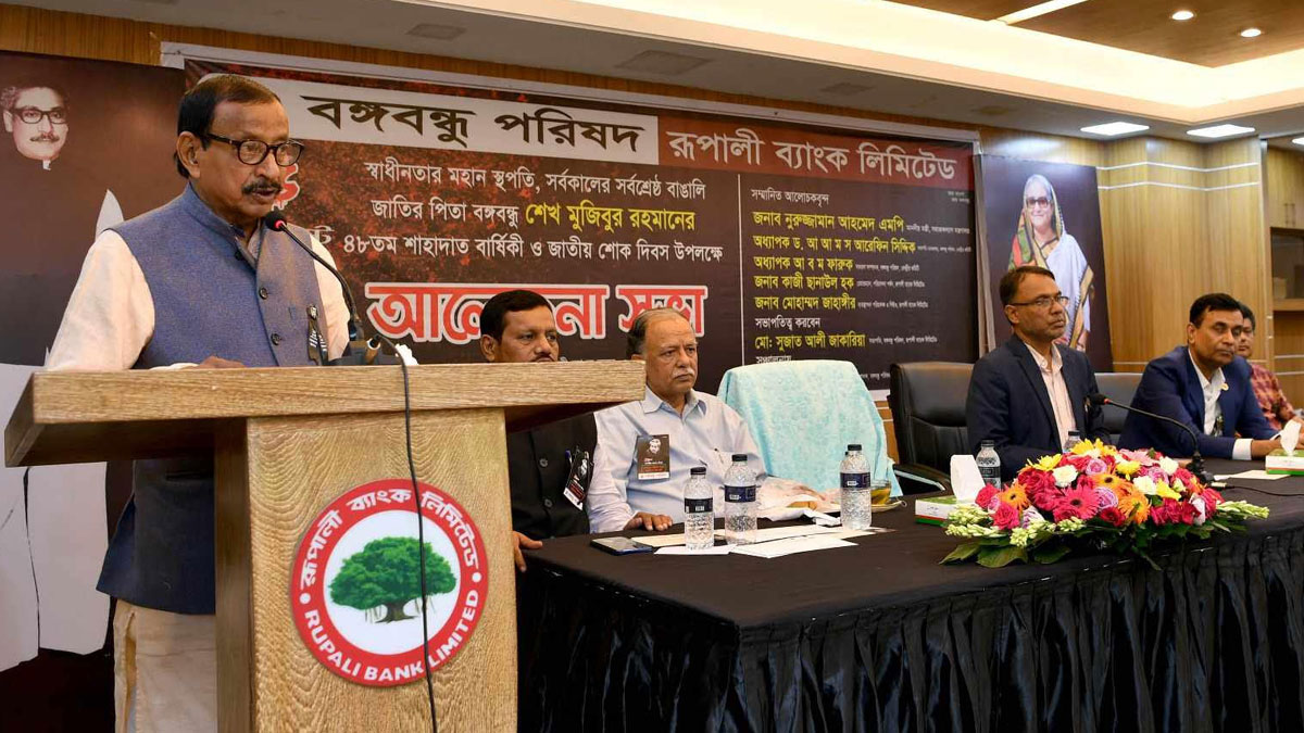 রোববার (২৭ আগস্ট) রাজধানীর মতিঝিলে রুপালী ব্যাংক লিমিটেডের সম্মেলন কক্ষে বঙ্গবন্ধু শেখ মুজিবুর রহমানের ৪৮তম শাহাদত বার্ষিকী ও জাতীয় শোক দিবস উপলক্ষ্যে আলোচনা সভায় প্রধান অতিথির বক্তব্যে তিনি এসব কথা বলেন। বঙ্গবন্ধু পরিষদ ও রুপালী ব্যাংক লিমিটেড এ আলোচনা সভার আয়োজন করে।