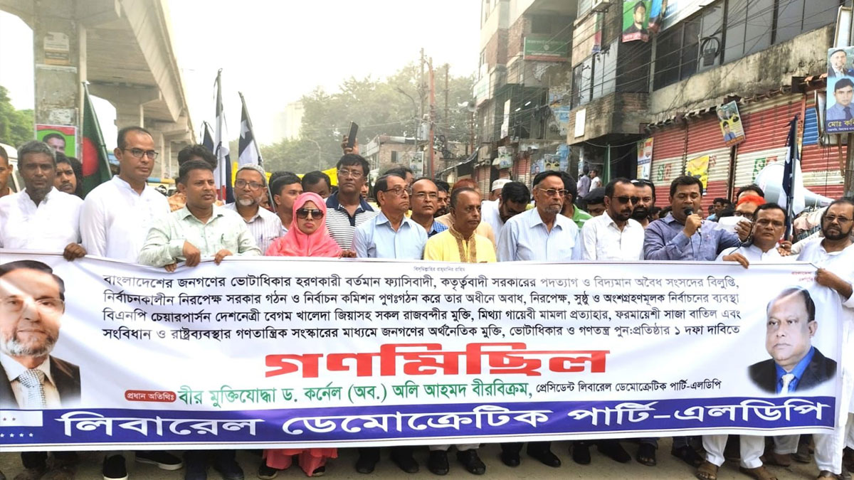 গণমিছিলে অংশ নেন এলডিপির প্রেসিডিয়াম সদস্য নূরুল আলম তালুকদার, নেয়ামূল বশির, আওরঙ্গজেব বেলাল, এসএম মোরশেদ, অধ্যক্ষ সাকলায়েন প্রমুখ।