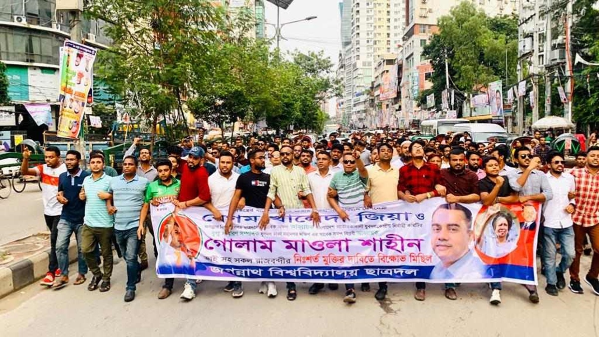 বাংলাদেশ জাতীয়তাবাদী যুবদলের কেন্দ্রীয় কমিটির যুগ্ম সাধারণ সম্পাদক গোলাম মাওলা শাহীনের নিঃশর্ত মুক্তির দাবিতে বিক্ষোভ মিছিল করেছে জগন্নাথ বিশ্ববিদ্যালয় শাখা ছাত্রদল।