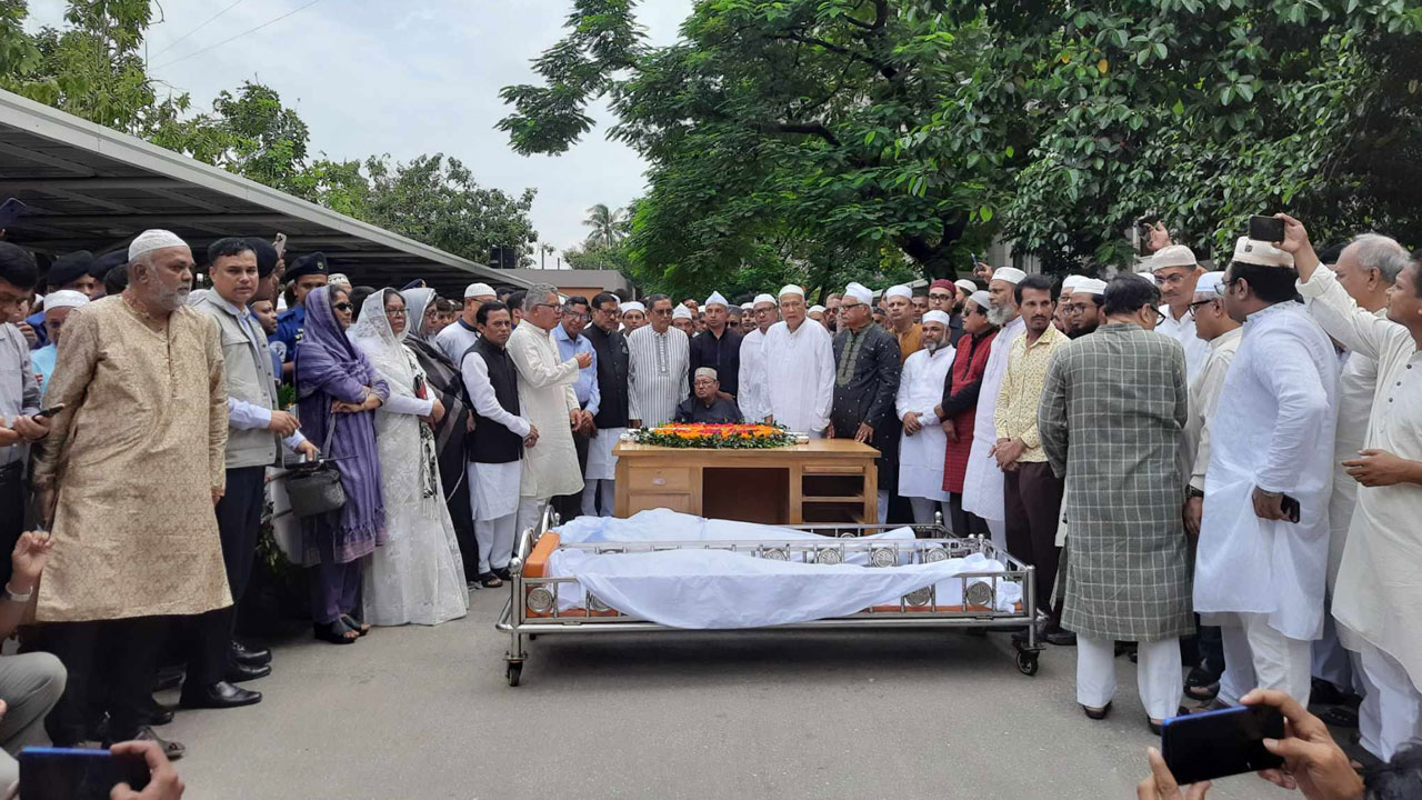 শনিবার (৩০ সেপ্টেম্বর) সকালে ন্যাম ভবন প্রাঙ্গণে প্রথম জানাজা শেষে শ্রদ্ধা জানানো হয়। আওয়ামী লীগের সাধারণ সম্পাদক ও সেতুমন্ত্রী ওবায়দুল কাদেরের নেতৃত্বে শ্রদ্ধা জানানো হয়।
