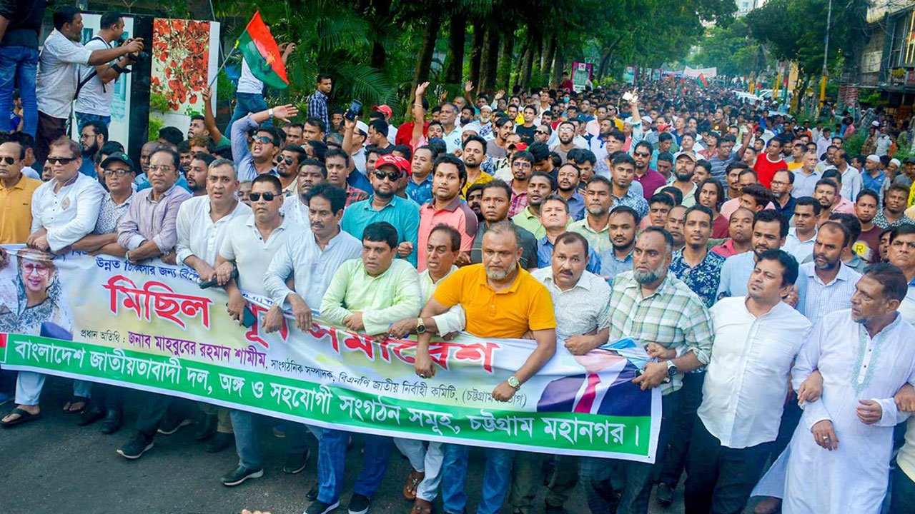 মাহবুবের রহমান শামীমের নেতৃত্বে কাজীর দেউরী নুর আহমদ সড়ক থেকে বিক্ষোভ মিছিল শুরু করে লাভ লেন, এনায়েত বাজার, জুবলী রোড হয়ে তিন পুলের মাথায় গিয়ে সমাবেশের মাধ্যমে শেষ হয়।