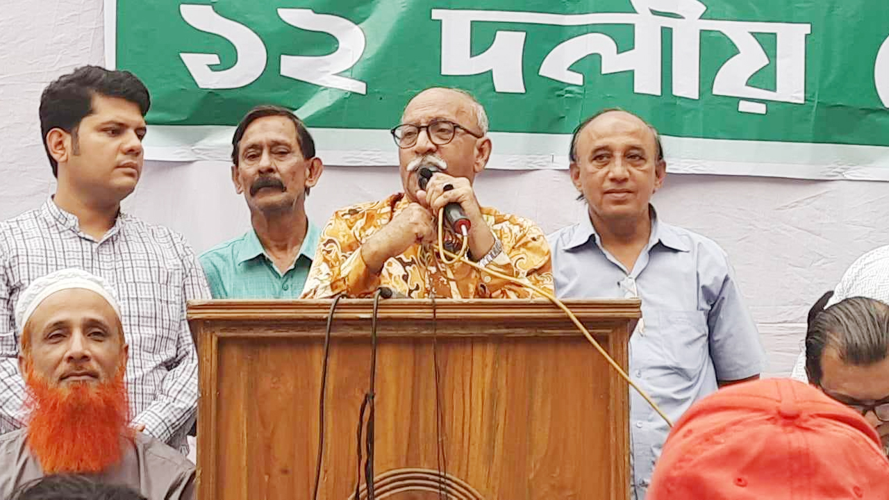 বুধবার (১৮ অক্টোবর) রাজধানীর বিজয় নগর পানির ট্যাংকের সামনে ‘নির্দলীয় নিরপেক্ষ সরকারের অধীনে নির্বাচন, অবৈধ সরকারের পদত্যাগ, নতুন নির্বাচন কমিশন গঠন, বেগম খালেদা জিয়ার নিঃশর্ত মুক্তি ও এক দফা দাবি’তে আয়োজিত জনসমাবেশে তিনি এসব কথা বলেন। সমাবেশের আয়োজন করে ১২ দলীয় জোট।