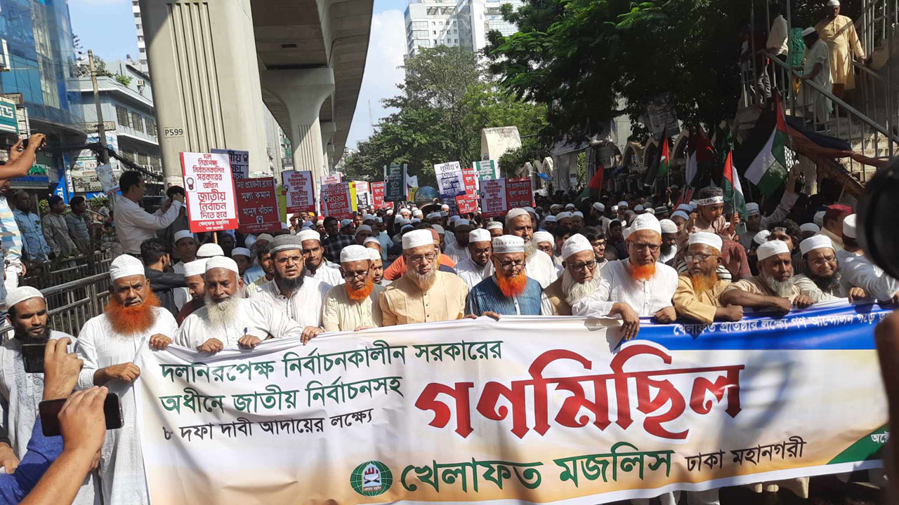 সরকারের পদত্যাগ দাবিতে রাজধানীতে খেলাফত মজলিসের মিছিল
