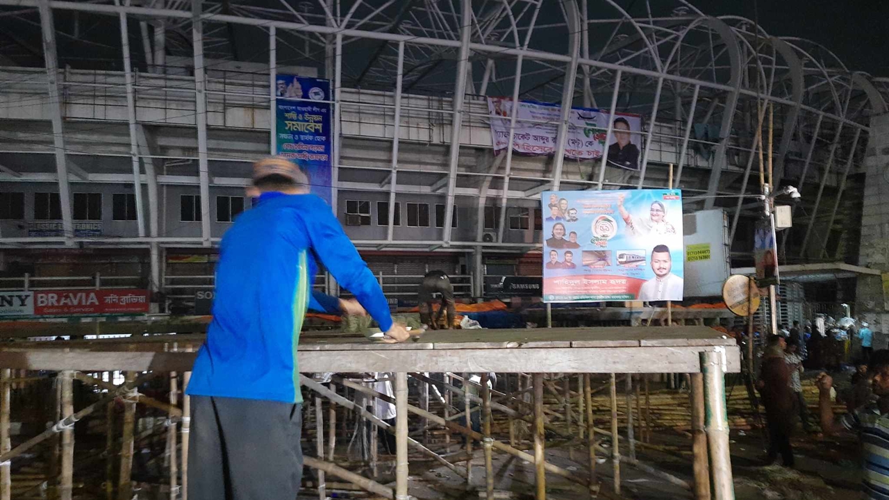 ঘোষণার পরই বন্ধ হওয়া আ.লীগের মঞ্চ তৈরির কাজ শুরু