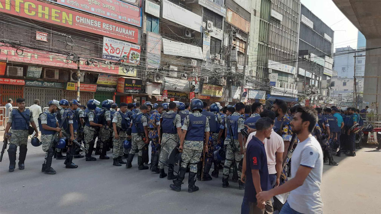 মতিঝিল এলাকায় গিয়ে দেখা যায়, টিকাটুলি মোড়, দৈনিক বাংলা মোড়, শাপলা চত্বর এলাকা, নটেরডেম কলেজের গলি, বাংলাদেশ ব্যাংকের পেছনে গলিসহ পুরো এলাকায় মোতায়েন রয়েছে আনসার ব্যাটালিয়ন, র্যাব, পুলিশ। আনসার ও পুলিশের অন্তত ৫০টি টহল গাড়ি সতর্কাবস্থায় চলাচল করতে দেখা যায়।