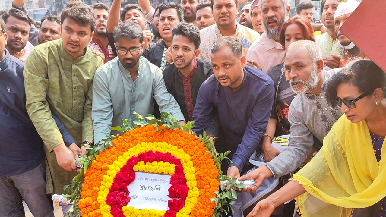 শহীদ নূর হোসেন দিবসে গুলিস্তান জিরো পয়েন্ট শহীদ নূর হোসেন চত্বরে শ্রদ্ধা নিবেদন করেছে গণঅধিকার পরিষদ। নূর হোসেনের প্রতি শ্রদ্ধা জানিয়ে পুষ্পস্তবক অর্পণ এবং ১ মিনিট নীরবতা পালন করেন গণঅধিকার পরিষদ নেতারা।