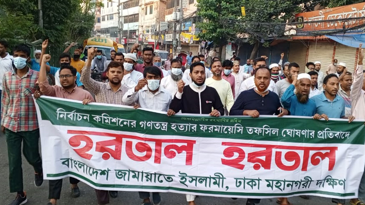 আপিলে নিবন্ধন বাতিলের প্রতিবাদে ও হরতালের সমর্থনে রাজধানীর বিভিন্ন স্থানে বিক্ষোভ, মিছিল ও পিকেটিং করেছে জামায়াতে ইসলামী।