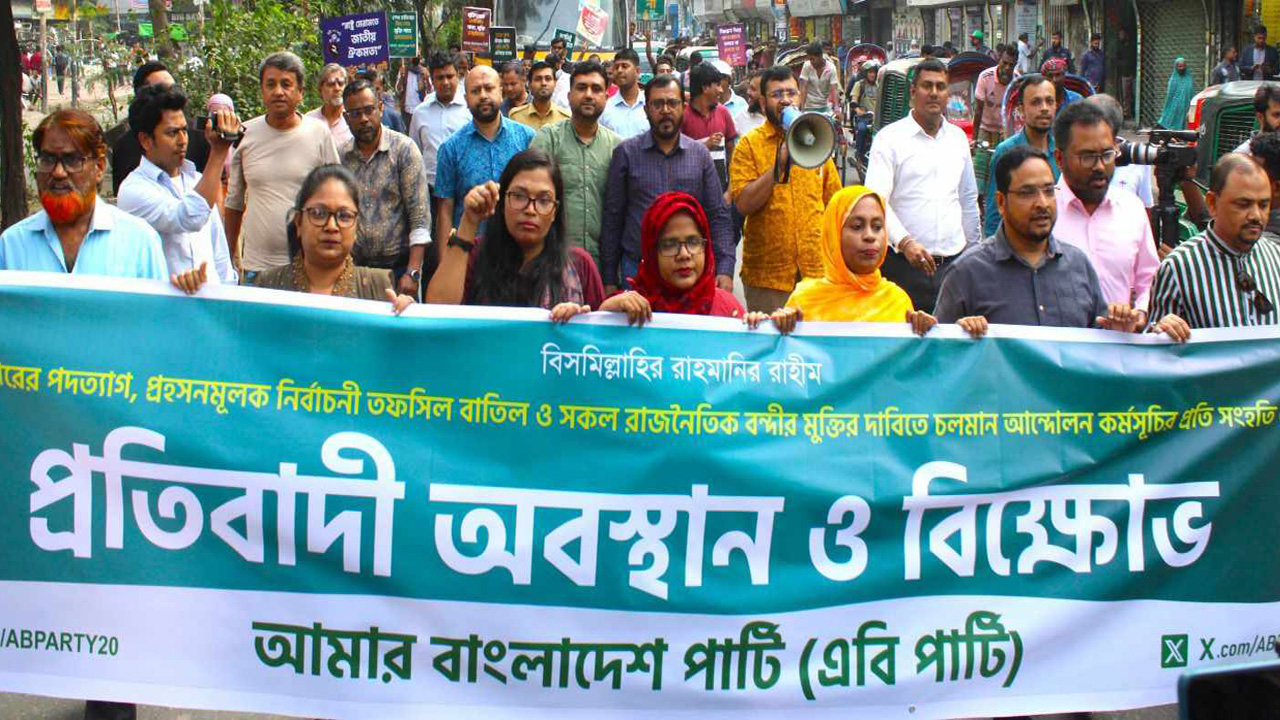 আয়োজিত ওই অবস্থান কর্মসূচিতে বক্তব্য রাখেন এবি পার্টির সদস্য সচিব মজিবুর রহমান মঞ্জু ও যুগ্ম সদস্য সচিব ব্যারিস্টার আসাদুজ্জামান ফুয়াদ।