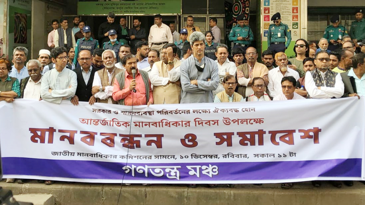 রোববার (১০ ডিসেম্বর) আন্তর্জাতিক মানবাধিকার দিবস উপলক্ষ্যে কারওয়ান বাজারে জাতীয় মানবাধিকার কমিশনের কার্যালয়ে সামনে গণতন্ত্র মঞ্চ আয়োজিত এক মানববন্ধনে এসব কথা বলেন বক্তারা।