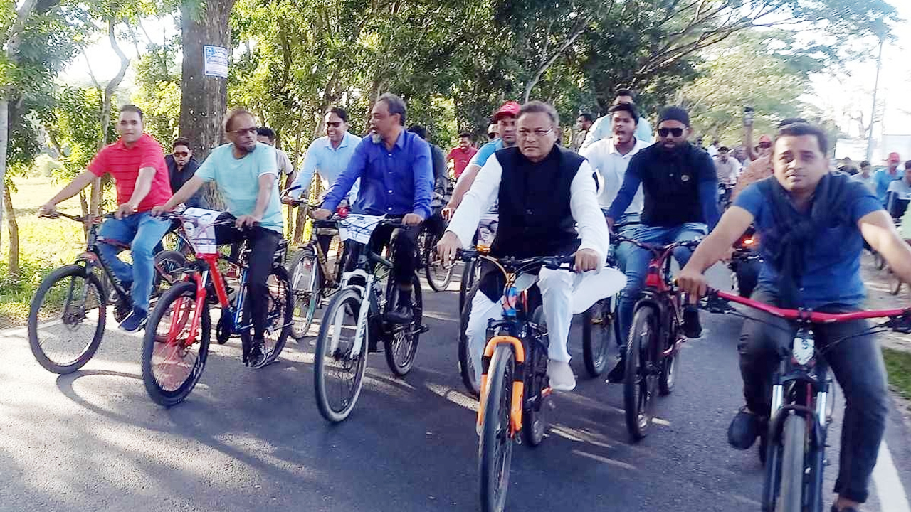 বঙ্গবন্ধুর অনুকরণে সাইকেল চালিয়ে তথ্যমন্ত্রীর গণসংযোগ শুরু