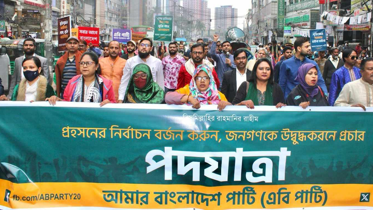 পদযাত্রা থেকে এবি পার্টির নেতাকর্মীরা জনগণকে নির্বাচন বর্জনের জন্য উদ্বুদ্ধ করেন।