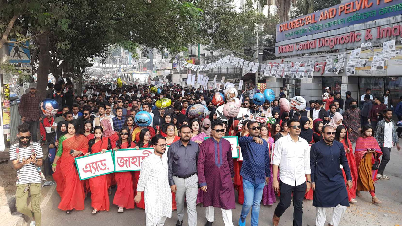 ঢাকা-১৩ আসনে নৌকার ভোট চেয়ে মহানগর ছাত্রলীগের র্যালি