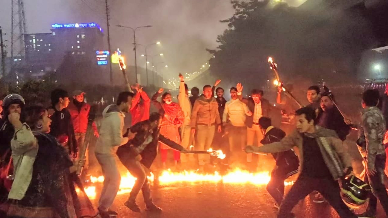 ভোট বর্জন ও অসহযোগ আন্দোলনের পক্ষে ডাকা হরতালের সমর্থনে রাজধানীতে মশাল মিছিল করেছে ছাত্রদলের নেতাকর্মীরা।