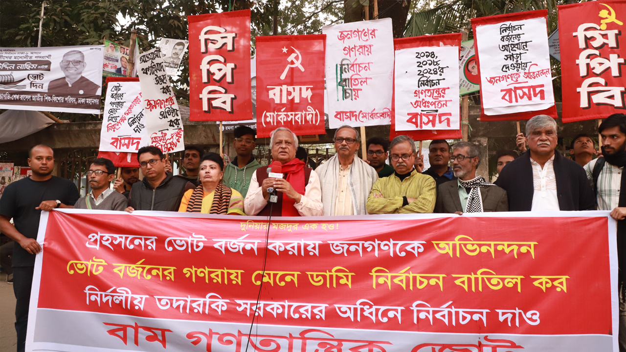 জাতীয় সংসদ নির্বাচন প্রত্যাখ্যান করে ‘প্রহসনের নির্বাচন’ বর্জন করায় জনগণকে অভিনন্দন জানিয়েছে বাম গণতান্ত্রিক জোট। একইসঙ্গে ভোট বর্জনের গণরায় মেনে ডামি নির্বাচন বাতিল করে অবিলম্বে নির্দলীয় তদারকি সরকারের অধীনে নির্বাচন দেওয়ার দাবিও জানিয়েছে জোটটি। প্রহসনের নির্বাচনেও নির্বাচন কমিশনের নিরপেক্ষতা প্রশ্নবিদ্ধ হয়েছে বলেও জানিয়েছে।
