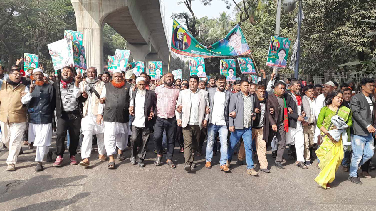 এদিকে দুপুর দেড়টার দিকে নারায়ণগঞ্জ থেকে আসা একটি মিছিলে থাকা মাহবুব আলম নামে এক নেতা ঢাকা পোস্টকে বলেন, জাতির পিতা বঙ্গবন্ধু শেখ মুজিবুর রহমানের স্বদেশ প্রত্যাবর্তন দিবস আজ। জাতির পিতার এই স্বদেশ প্রত্যাবর্তন দিবসে আমরা এখানে উপস্থিত হয়েছি।