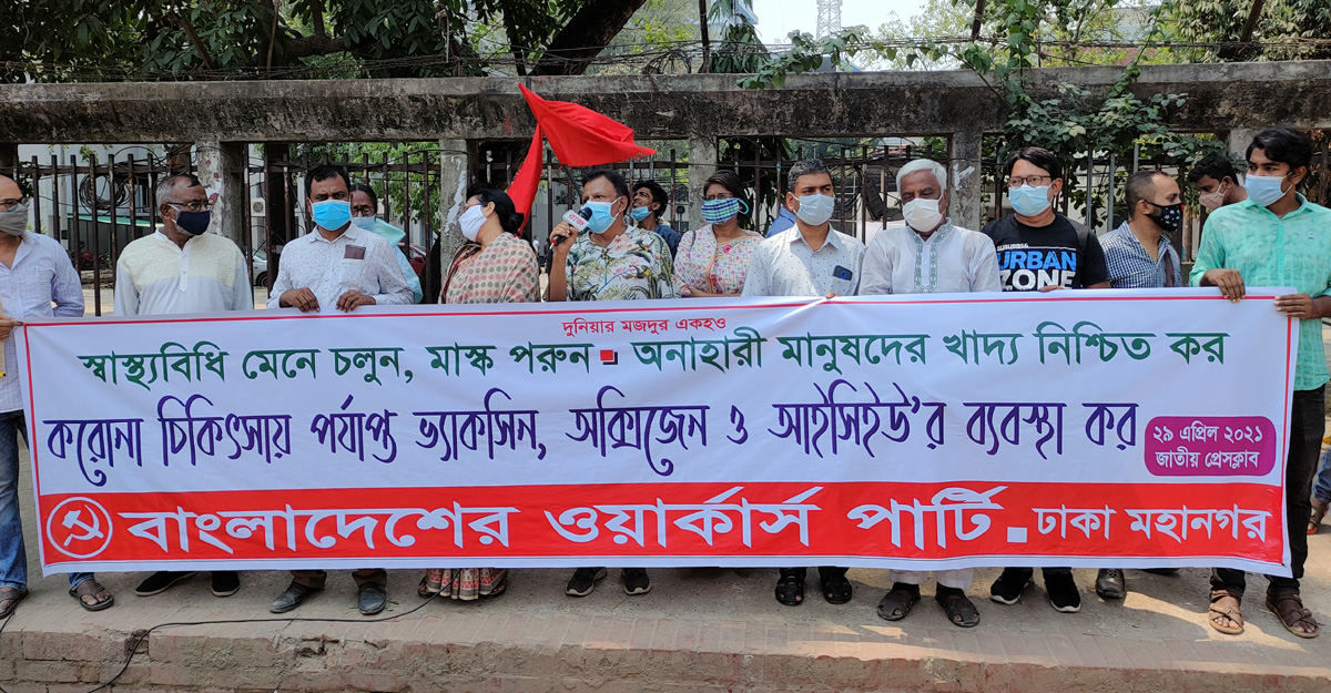 সভাপতির বক্তব্যে ওয়ার্কার্স পার্টির কেন্দ্রীয় কমিটির সদস্য এবং ঢাকা মহানগর কমিটির সভাপতি আবুল হোসেন বলেন, হাসপাতালগুলোতে করোনা চিকিৎসায় আইসিইউ এবং অক্সিজেন সরবরাহ বৃদ্ধি করতে হবে। এ সময়ে মানুষজন হাসপাতালে ঘুরেও যথাযথ চিকিৎসা সেবা পাচ্ছে না। সাধারণ মানুষ আজ খুব কষ্টে দিনাতিপাত করছে। প্রাইভেটকার-মাইক্রোবাস ব্যক্তিগত গাড়ির সবকিছু চলাচল করলেও শুধুমাত্র গণপরিবহন বন্ধ রাখায় এর সঙ্গে সংশ্লিষ্ট মানুষজনের জীবনযাপন হুমকির মুখে পড়েছে। অবিলম্বে সরকারকে এসব সংকট সমাধানে কার্যকরী পদক্ষেপ গ্রহণ করতে হবে।