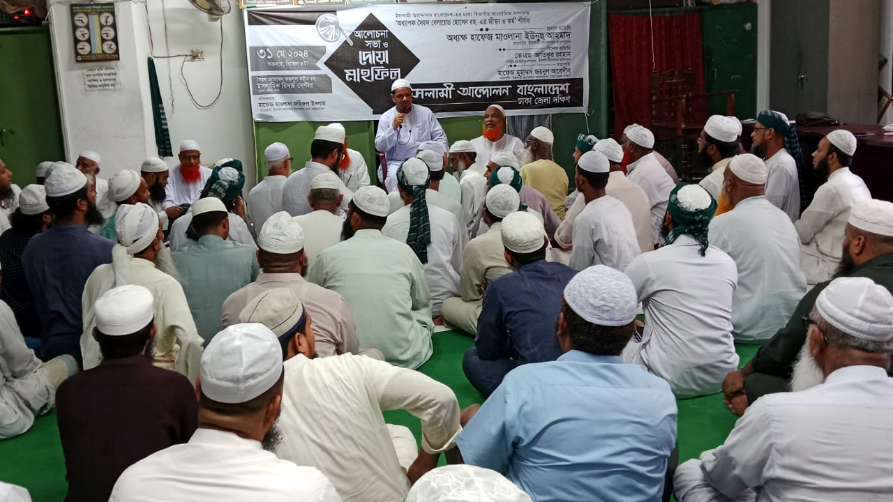 সংগঠনের ঢাকা জেলা দক্ষিণ সভাপতি হাফেজ মুহাম্মদ জয়নুল আবেদীনের সভাপতিত্বে ও সেক্রেটারি হাফেজ মাওলানা জহিরুল ইসলামের পরিচালনায় অনুষ্ঠিত আলোচনা সভায় বিশেষ অতিথির বক্তব্য দেন নায়েবে আমির আল্লামা আব্দুল হক আজাদ, মহাসচিব প্রিন্সিপাল হাফেজ মাওলানা ইউনুছ আহমাদ, মাওলানা গাজী আতাউর রহমান, কেএম আতিকুর রহমান।