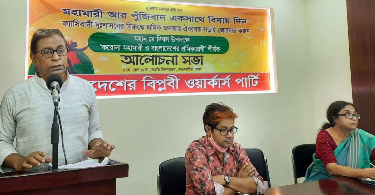 শনিবার (১ মে) দুপুরে সেগুনবাগিচায় সংহতি মিলনায়তনে ‘করোনা মহামারি ও বাংলাদেশের শ্রমিক শ্রেণি’ শীর্ষক আলোচনা সভায় এসব কথা বলেন বিপ্লবী ওয়ার্কার্স পার্টির সাধারণ সম্পাদক সাইফুল হক।