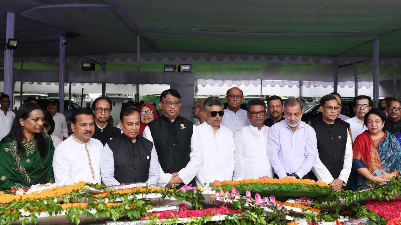 রোববার (২৩ জুন) সকালে রাজধানীর ধানমন্ডির ৩২ নম্বর সড়কে বঙ্গবন্ধু স্মৃতি জাদুঘরে জাতির পিতা বঙ্গবন্ধু শেখ মুজিবুর রহমানের প্রতিকৃতিতে পুষ্পস্তবক অর্পণ করেন সংসদীয় দলের নেতারা।
