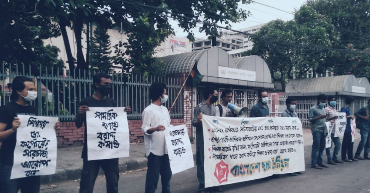 তারা আরও বলেন, রূপপুর পারমাণবিক বিদ্যুৎ প্রকল্পের বিশাল বাজেট কিংবা শিক্ষণ-প্রশিক্ষণ খাতের বরাদ্দকে শিক্ষা খাতের বরাদ্দ হিসেবে দেখানোর নজিরও অতীতে আমাদের সামনে স্থাপন করেছে বর্তমান সরকার। আমরা এইসব শুভঙ্করের ফাঁকি আর দেখতে চাই না। করোনার ভয়াল থাবা আমাদের চোখে আঙুল দিয়ে দেখিয়ে গেছে স্বাস্থ্য খাতের ভয়াল দশা। সামরিক খাতের পাহাড়সম বরাদ্দ কমিয়ে স্বাস্থ্য খাতেও পর্যাপ্ত বরাদ্দ নিশ্চিত করা সরকারের আশু কর্তব্য।