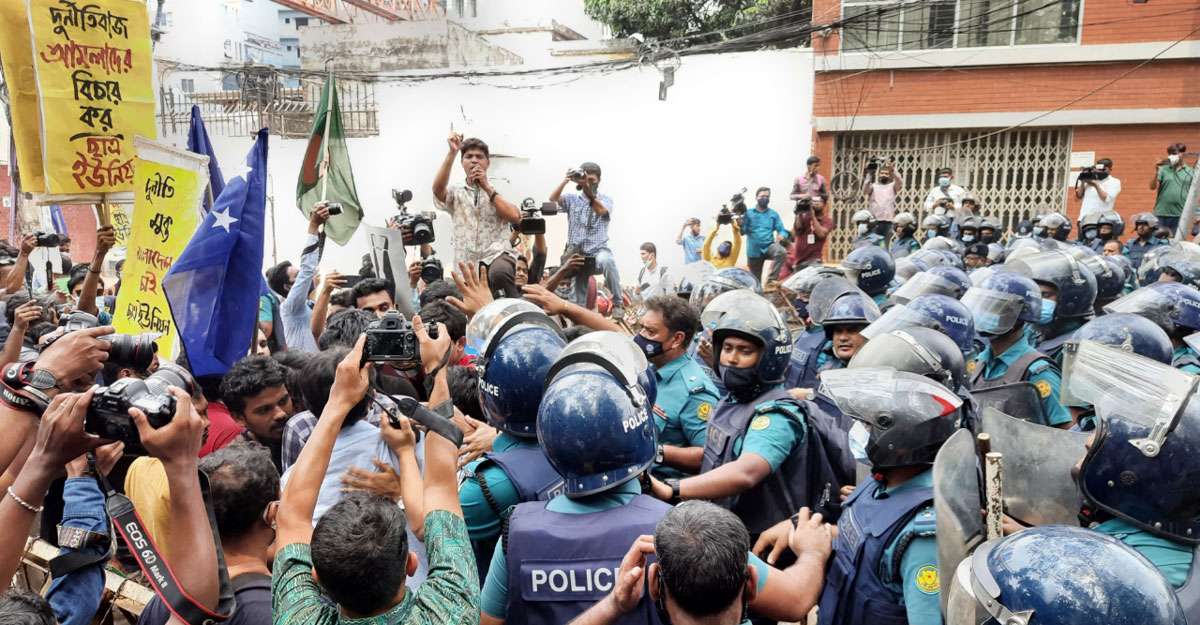 প্রথম আলোর জ্যেষ্ঠ প্রতিবেদক রোজিনা ইসলামের বিরুদ্ধে মামলা দায়েরের ঘটনায় তার নিঃশর্ত মুক্তি, স্বাস্থ্যমন্ত্রী ও সচিবের অপসারণ এবং দুর্নীতিবাজ কর্মকর্তাদের বিচার ও অফিসিয়াল সিক্রেসি আইন বাতিলের দাবিতে বাংলাদেশ ছাত্র ইউনিয়নের স্বাস্থ্য মন্ত্রণালয় ঘেরাও কর্মসূচিতে বাধা দিয়েছে পুলিশ।