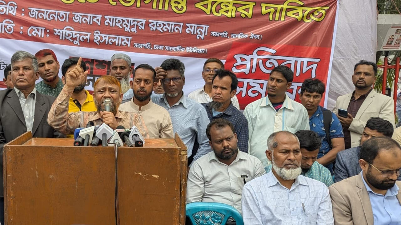 প্রফেসর ড. দেওয়ান সাজ্জাদের সঞ্চালনায় অনুষ্ঠিত প্রতিবাদ সমাবেশে আরও বক্তব্য দেন বাংলাদেশ ফেডারেল সাংবাদিক ইউনিয়নের দপ্তর সম্পাদক আবু বক্কর, ঢাকা সাংবাদিক ইউনিয়নের কোষাধ্যক্ষ খন্দকার আলমগীর হোসেন, সাংবাদিক সাদেক রহমান, গণ মুক্তিজোটের কো-চেয়ারম্যান আখতার হোসেন, নাগরিক অধিকার পরিষদের চেয়ারম্যান আব্দুল আহাদ নুর, ঢাকা সাংবাদিক ইউনিয়নের নির্বাহী সদস্য আব্দুল্লাহ মজুমদার, বিশিষ্ট লেখক ও গবেষক আলাউদ্দিন কামরুল এবং গবেষক ইমরান চৌধুরী প্রমুখ।