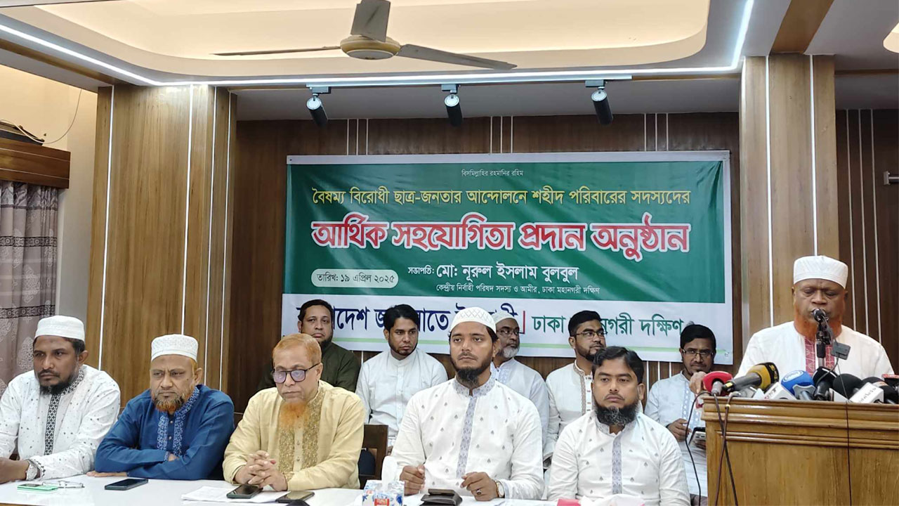 শনিবার (১৯ এপ্রিল) দুপুরে জামায়াতে ইসলামী ঢাকা মহানগর দক্ষিণের উদ্যোগে বৈষম্য বিরোধী ছাত্র আন্দোলনে শহীদ পরিবারের মধ্যে আর্থিক সহায়তা প্রদান অনুষ্ঠানে প্রধান অতিথির বক্তব্যে একথা বলেন তিনি।
