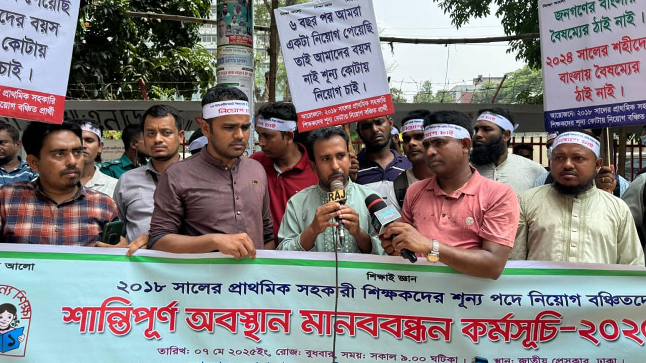 তিনি বলেন, ২০১৮ সালে প্রাথমিক সহকারী শিক্ষক নিয়োগের লিখিত ও মৌখিক পরীক্ষায় উত্তীর্ণ হওয়ার পরও বিগত সময় তাদের বঞ্চিত করেছিল। এই চাকরি প্রার্থীরা নিজেদের যোগ্যতার প্রমাণ করার পরও তাদের চাকরিতে নিয়োগ দেয়নি আওয়ামী লীগ সরকার। এর পেছনে ছিল পতিত স্বৈরাচারের গণশিক্ষা প্রতিমন্ত্রী জাকির হোসেন। তার নিয়োগ বাণিজ্য অব্যাহত রাখতেই মেধাবীদের নিয়োগ দেওয়া হয়নি। এই আন্দোলনকারীদের দাবি ২০১৮ সালের ৪ হাজার শূন্য পদে যেন তাদের নিয়োগ দেওয়া হয়, আমরা এই দাবির সঙ্গে সংহতি জানাচ্ছি। অন্তর্বর্তীকালীন সরকারের প্রতি আমাদের আহ্বান দ্রুত সময় তাদের নিয়োগ দেওয়া হয়।