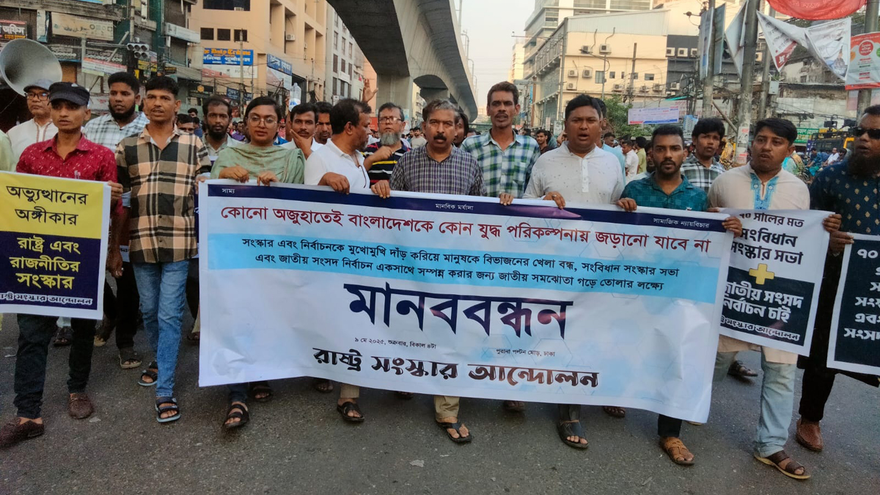 শুক্রবার (৯ মে) রাজধানীর পল্টন মোড়ে রাষ্ট্র সংস্কার আন্দোলন আয়োজিত এক মানববন্ধনে এসব কথা বলেন তিনি।