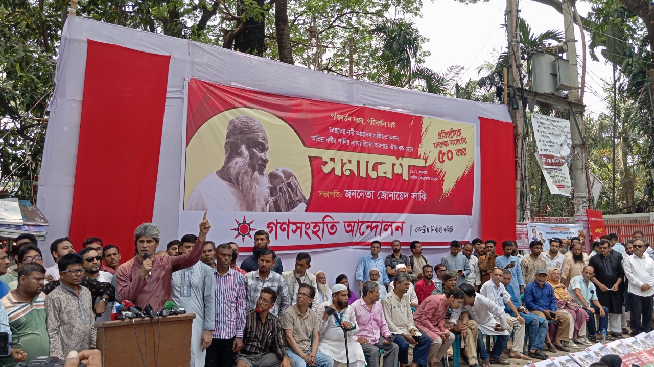 শুক্রবার (১৬ মে) জাতীয় প্রেস ক্লাবের সামনে গণসংহতি আন্দোলন আয়োজিত ‘ভারতের নদী আগ্রাসন প্রতিহত করুন, অভিন্ন নদীর পানির ন্যায্য হিস্যা আদায়ে ঐক্যবদ্ধ হওয়ার’ দাবিতে সমাবেশে এসব কথা বলেন তিনি।