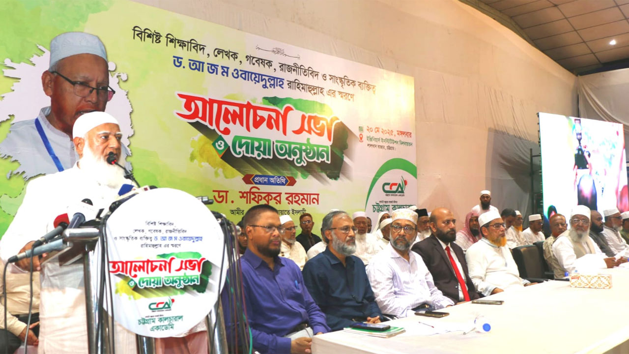 মঙ্গলবার (২০ মে) চট্টগ্রাম ইঞ্জিনিয়ার্স ইনস্টিটিউটে সাবেক জামায়াত জেতা মরহুম ড. আ জ ম ওবায়েদুল্লাহর স্মরণে চট্টগ্রাম কালচারাল একাডেমি আয়োজিত আলোচনা সভা ও দোয়া অনুষ্ঠানে প্রধান অতিথির বক্তব্যে তিনি এসব কথা বলেন।