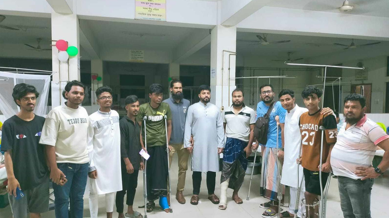হাসপাতালের দুইটি ওয়ার্ডে ভর্তি রয়েছন- মো. রাফি হোসেন, কাজী মো. জাবের, মো. আল আমিন, মো. মনির হোসেন, মো. ছাব্বির হোসেন, মো. শাহিন আলম, মো. হাছান, মো. আব্দুল্লাহ, মো. রিফাত হাং, মো. পারভেজ মিয়া, মো. শাকিল খান, মো. আব্দল্লাহ, মো. রফিকুল ইসলাম, মো. রুমান হোসেন, মো. জামাল হোসেন, মো. আলম শেখ, মো. দুলাল মান, মো. মনির খান, মো. নাদিম ও আরেকটি ওয়ার্ডে মো. আইয়ুব হোসেন, মো. শামিম মিয়া, মো. সোয়েব, মো. আরাফাত, মো. সজিব হোসেন, মো. শহিদুল, মো. রেজওয়ান, মো. মাহিম, মো. ইব্রাহিম খলিল, মো. মাসুদ, মো. শাহ্ রিয়ায়, মো. মাসুমসহ ৪৮ জন।