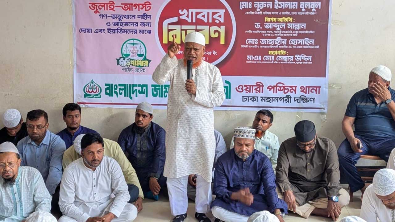 জুলাই গণ-অভ্যুত্থানের বর্ষপূর্তিতে জামায়াতে ইসলামী ঘোষিত কর্মসূচির অংশ হিসেবে ঢাকা মহানগর দক্ষিণের অন্তর্ভুক্ত ওয়ারী পশ্চিম থানার উদ্যোগে শনিবার (৫ জুলাই) দুপুরে বনগ্রাম দারুল আবরার মাদ্রাসা ও এতিমখানায় এতিম শিশুদের মধ্যে খাবার বিতরণপূর্বক আলোচনা সভায় প্রধান অতিথির বক্তব্যে তিনি একথা বলেন।