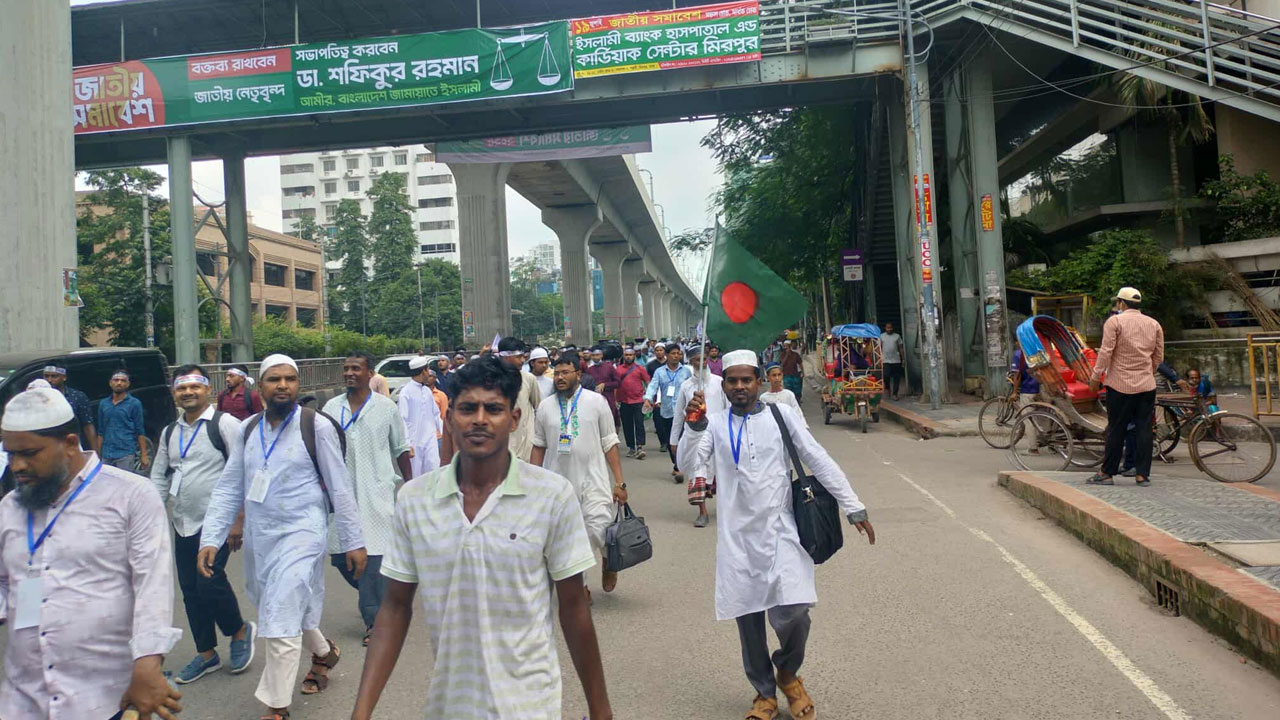 দেশের বিভিন্ন প্রান্ত থেকে এসে দলে দলে নেতাকর্মীরা জামায়াতের জাতীয় সমাবেশের দিকে যাচ্ছেন। রাজধানীর সড়কে সড়কে দাঁড়িপাল্লার স্লোগান দিচ্ছেন তারা। সাত দফা দাবিতে সোহরাওয়ার্দী উদ্যানে জাতীয় সমাবেশ করছে দলটি।