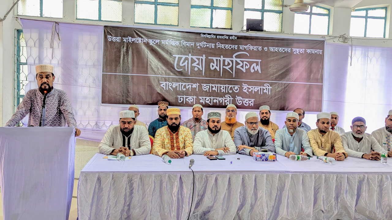 মঙ্গলবার (২২ জুলাই) সকালে রাজধানীর আইসিএস স্কুল মিলনায়তনে জামায়াতে ইসলামী ঢাকা মহানগর উত্তর আয়োজিত উত্তরার দিয়াবাড়িতে মর্মান্তিক বিমান দুর্ঘটনায় নিহত ও আহতদের জন্য আয়োজিত দোয়া অনুষ্ঠানে সভাপতির বক্তব্যে এসব কথা বলেন তিনি।