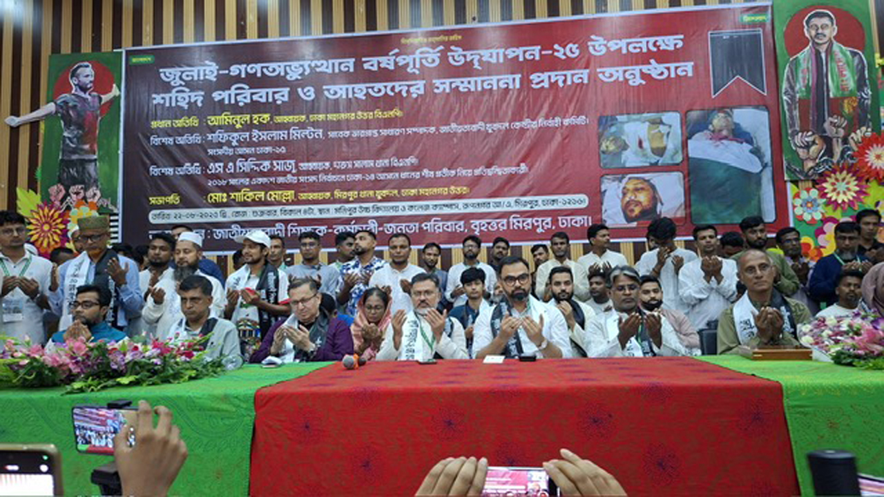 শুক্রবার (২২ আগস্ট) মনিপুর উচ্চ বিদ্যালয়ে মিরপুরস্থ জাতীয়তাবাদী শিক্ষক কর্মচারী জনতা পরিবারের উদ্যোগে আয়োজিত ‘জুলাই গণ-অভ্যুত্থান বর্ষপূর্তি উদযাপন-২০২৫ ও শহীদ পরিবার ও আহতদের সম্মাননা প্রদান’ অনুষ্ঠানে তিনি এসব কথা বলেন।