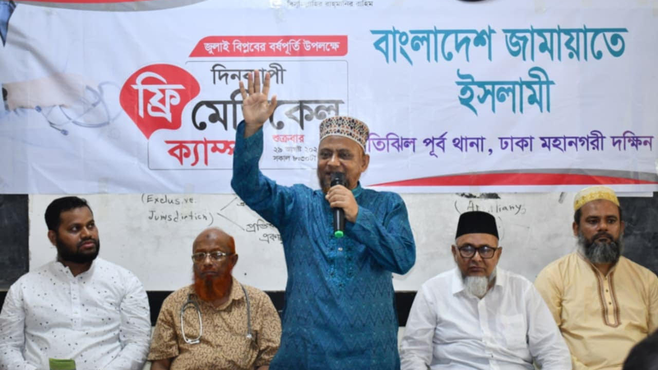 শুক্রবার (২৯ আগস্ট) বাংলাদেশ জামায়াতে ইসলামী মতিঝিল পূর্ব থানা আয়োজিত ফ্রি মেডিকেল ক্যাম্পের উদ্বোধনী অনুষ্ঠানে প্রধান অতিথির বক্তব্যে তিনি এসব কথা বলেন তিনি।