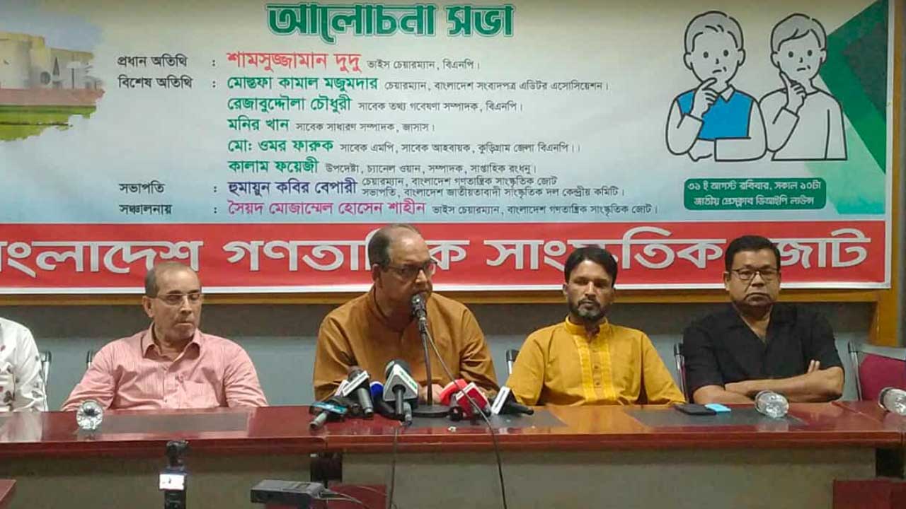 রোববার (৩১ আগস্ট) জাতীয় প্রেস ক্লাবে বাংলাদেশ গণতান্ত্রিক সাংস্কৃতিক জোট আয়োজিত এক আলোচনা সভায় প্রধান অতিথির বক্তব্যে তিনি এ কথা বলেন।