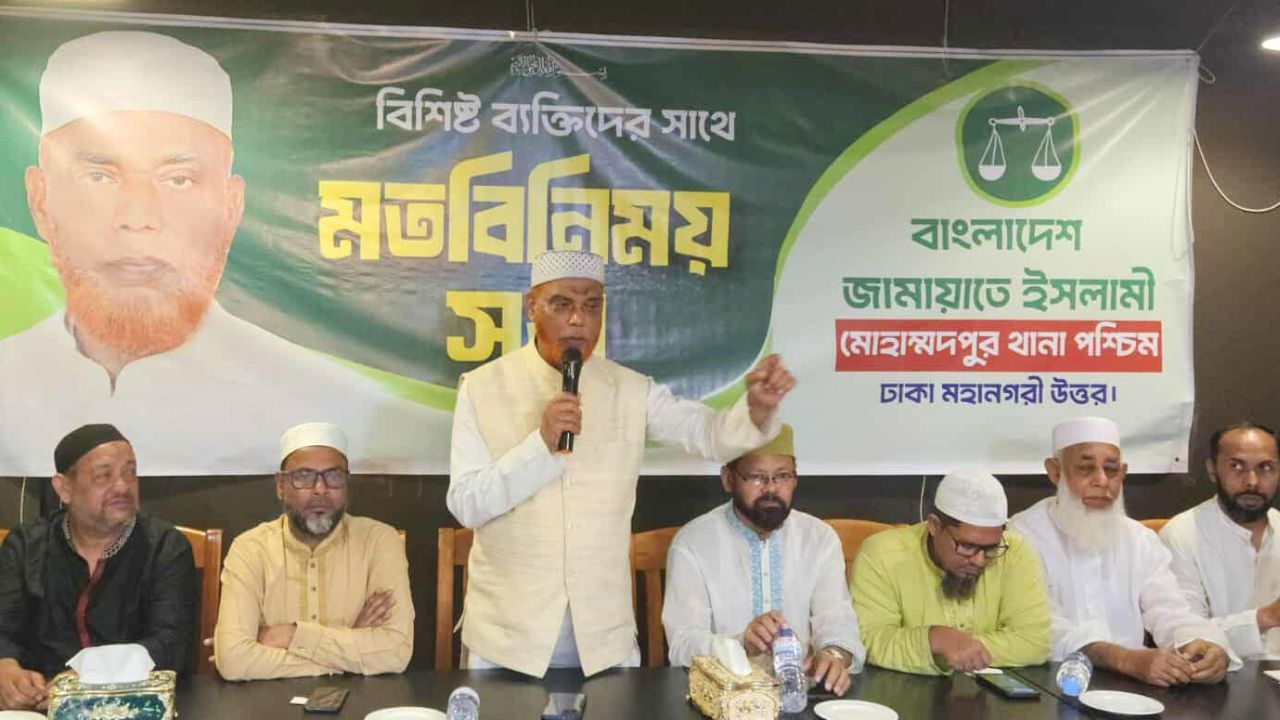 শনিবার (২৫ অক্টোবর) মোহাম্মদপুর থানা পশ্চিম জামায়াতের উদ্যোগে মোহাম্মাদীয়া হাউজিং ও জাপান গার্ডেন সিটি এলাকায় এক মতবিনিময় সভায় এসব কথা বলেন তিনি।