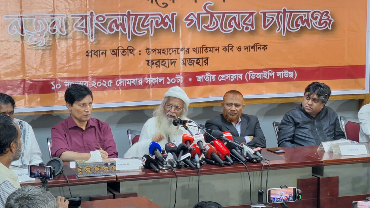 ফরহাদ মজহার বলেন, আমাদের নতুন বাংলাদেশের চ্যালেঞ্জ খুব সহজ। নতুন গণপরিষদ গঠন করা এবং একটা গণপরিষদে নির্বাচন করা। গণপরিষদে আমাদের সমস্ত সাংবিধানিক প্রশ্ন, সব আইনি প্রশ্ন, রাষ্ট্রীয় প্রশ্ন ফয়সালা করা। যখন আমরা সিম্পল ফরমুলাকে জটিল করে ফেলি, এদিক-ওদিক নিয়ে যাই, তখন বিভিন্ন শক্তির কারণে আমরা এটাকে তখন নষ্ট করে ফেলি।