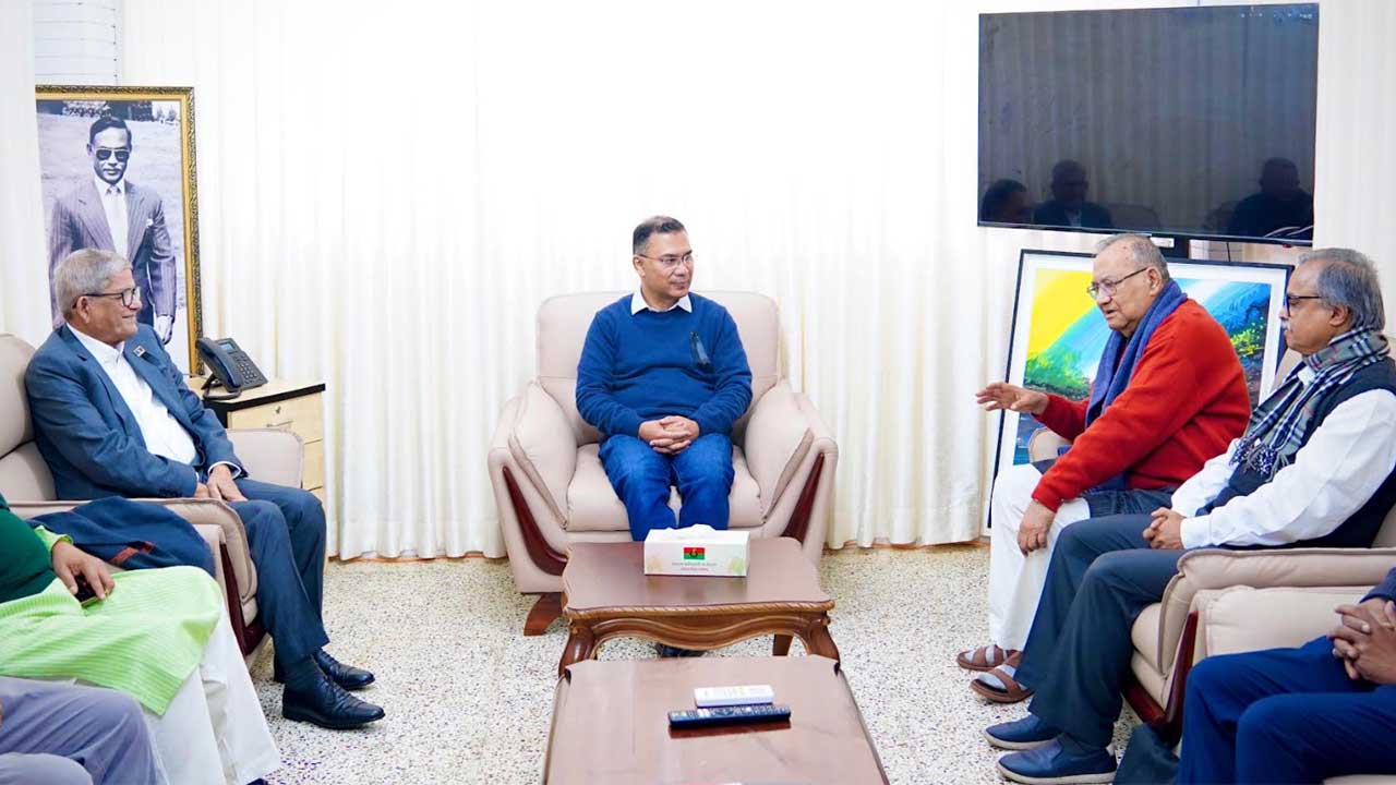 তারেক রহমানের সঙ্গে বাম জোটের শীর্ষ নেতাদের সাক্ষাৎ