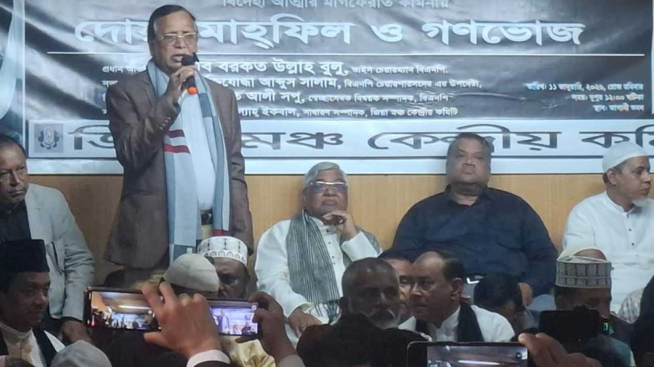 রোববার (১০ জানুয়ারি) দুপুরে রাজধানীর ভাষানী মিলনায়তনে জিয়া মঞ্চ-এর উদ্যোগে বিএনপির চেয়ারপার্সন ও সাবেক প্রধানমন্ত্রী বেগম খালেদা জিয়ার বিদেহী আত্মার মাগফেরাত কামনায় দোয়া মাহফিলে সভাপতির বক্তব্যে তিনি এ কথা বলেন।