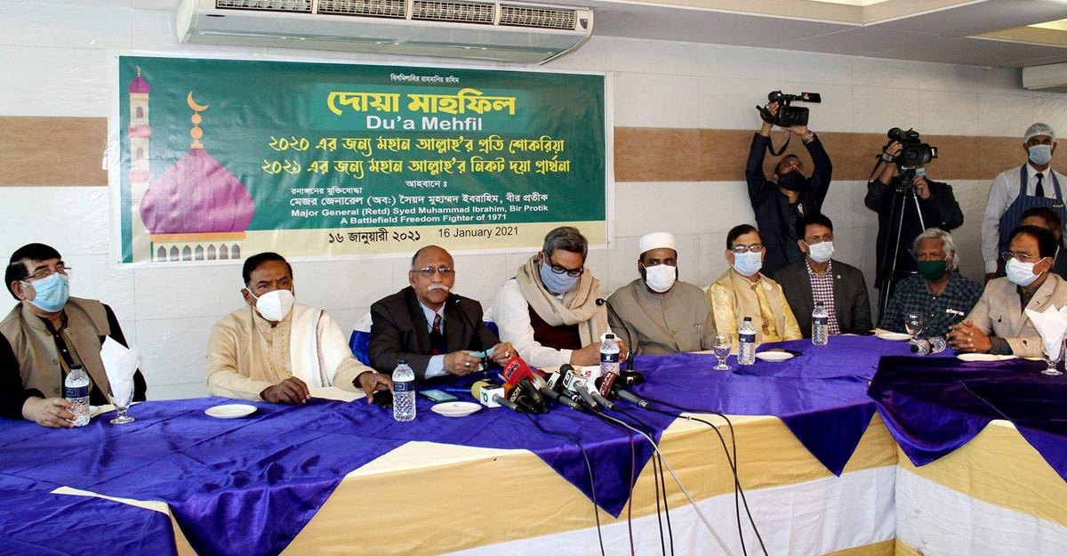 শনিবার (১৬ জানুয়ারি) ধানমন্ডি-২৭ নম্বর এক দোয়া মাহফিলে অংশ নিয়ে তিনি এসব কথা বলেন। ‘২০২০ এর জন্য মহান আল্লাহর প্রতি শোকরিয়া, ২০২১ এর জন্য আল্লাহ নিকট দোয়া প্রার্থনা’ শীর্ষক দোয়া মাহফিলের আয়োজন করেন বাংলাদেশ কল্যাণ পার্টির চেয়ারম্যান মেজর জেনারেল (অব) সৈয়দ মুহাম্মদ ইবরাহিম।