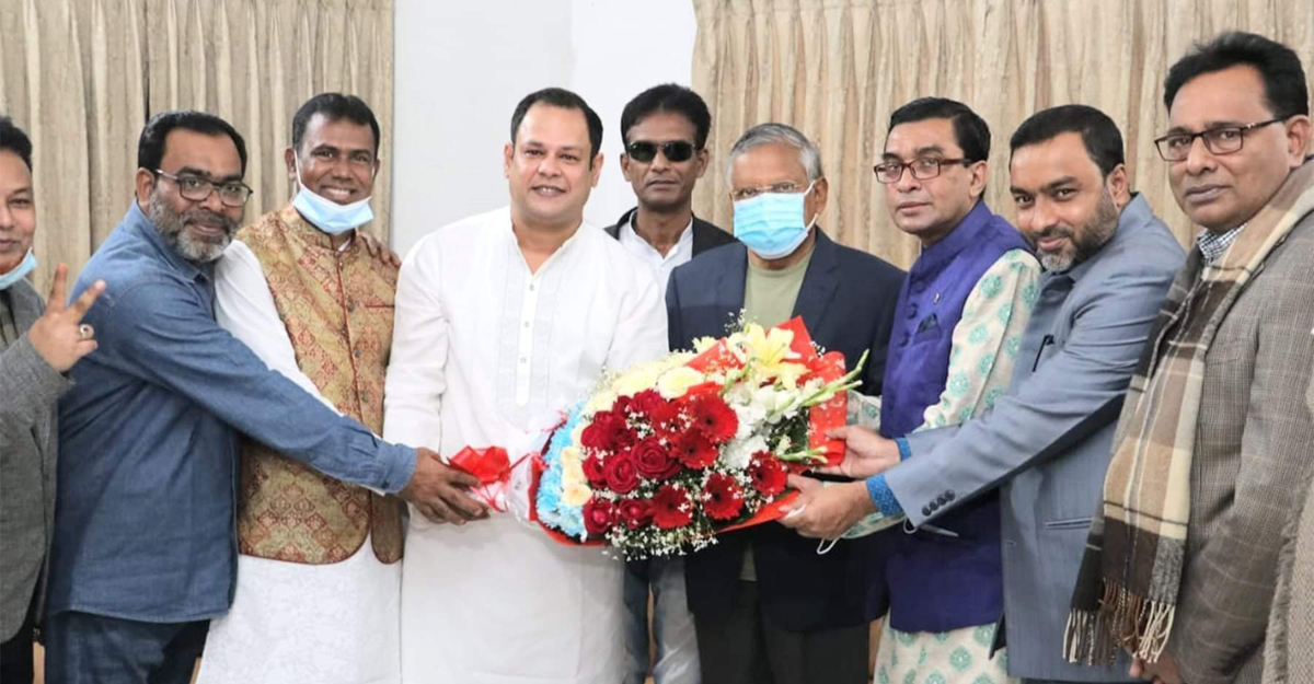 জাতীয় যুব সংহতির নবনিযুক্ত আহ্বায়ক কমিটির সদস্যরা পার্টি মহাসচিবকে ফুলেল শুভেচ্ছা জানান