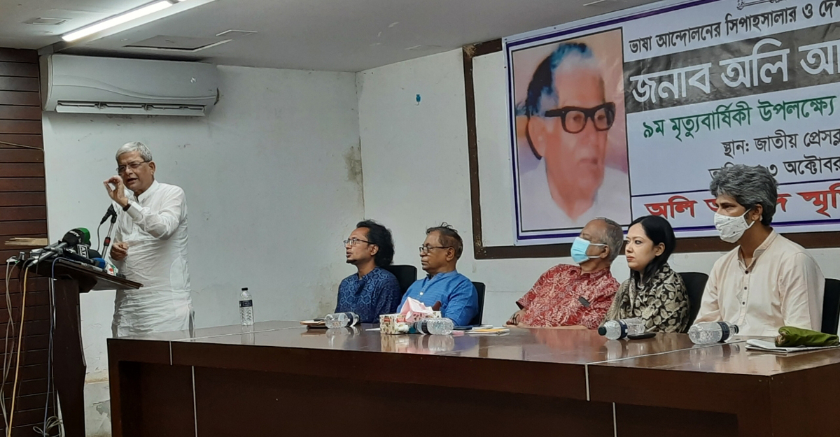 শনিবার (২৩ সেপ্টেম্বর) জাতীয় প্রেস ক্লাবের জহুর হোসেন চৌধুরী হলে অলি আহাদ স্মৃতি সংসদ আয়োজিত ভাষা আন্দোলনের সিপাহসালার ও দেশবরেণ্য জাতীয় নেতা অলি আহাদের নবম মৃত্যুবার্ষিকী উপলক্ষে এক আলোচনা সভায় তিনি এসব কথা বলেন।