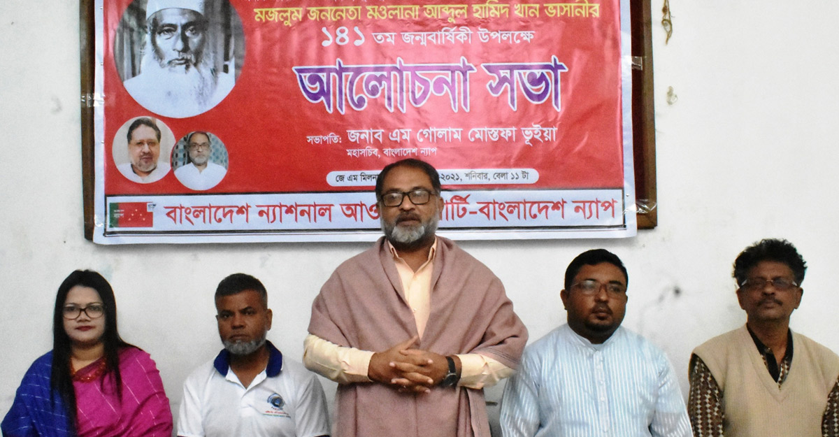 শনিবার (১১ ডিসেম্বর) নয়াপল্টনের যাদু মিয়া মিলনায়তনে মজলুম জননেতা মওলানা ভাসানীর ১৪১তম জন্মবার্ষিকী উপলক্ষে বাংলাদেশ ন্যাশনাল আওয়ামী পার্টি-বাংলাদেশ ন্যাপ আয়োজিত আলোচনা সভায় সভাপতির বক্তব্যে গোলাম মোস্তফা এসব কথা বলেন।