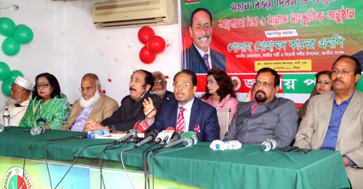 রোববার (১৯ ডিসেম্বর) জাতীয় পার্টি চেয়ারম্যানের বনানী কার্যালয়ে বিজয় দিবস উপলক্ষে আলোচনা সভা ও সাংস্কৃতিক অনুষ্ঠানে তিনি এ কথা বলেন।