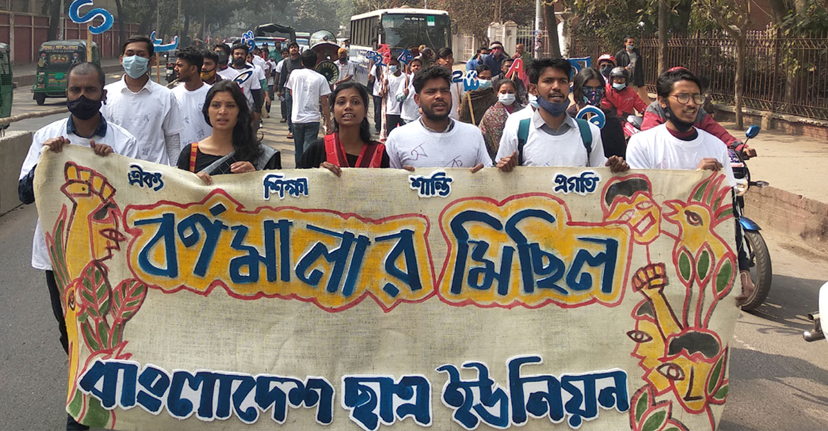 সর্বস্তরে বাংলা ভাষা চালুর দাবিতে বর্ণমালা মিছিল