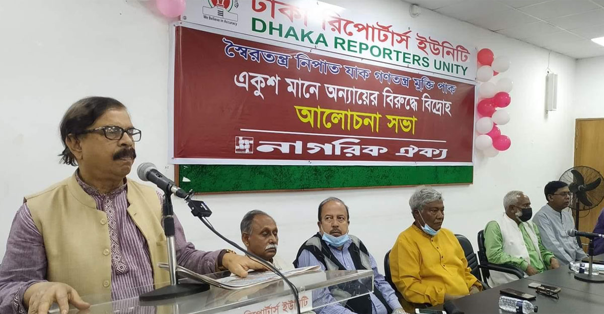 মঙ্গলবার (২২ ফেব্রুয়ারি) ঢাকা রিপোর্টার্স ইউনিটির নসরুল হামিদ মিলনায়তনে নাগরিক ঐক্য আয়োজিত আলোচনা সভায় তিনি এসব কথা বলেন।